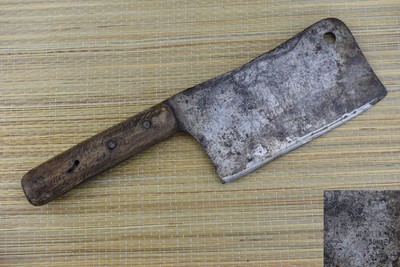 This beauty is looking for a new home. Antique 1800s vtg h f heacock philadelphia pa primitive butchers meat cleaver. See more ideas about kitchen knives, knife, butcher knife. I wanted something with a little more character, something that a deranged ax murder might wield in a horror movie. I have slowly been cleaning them up.